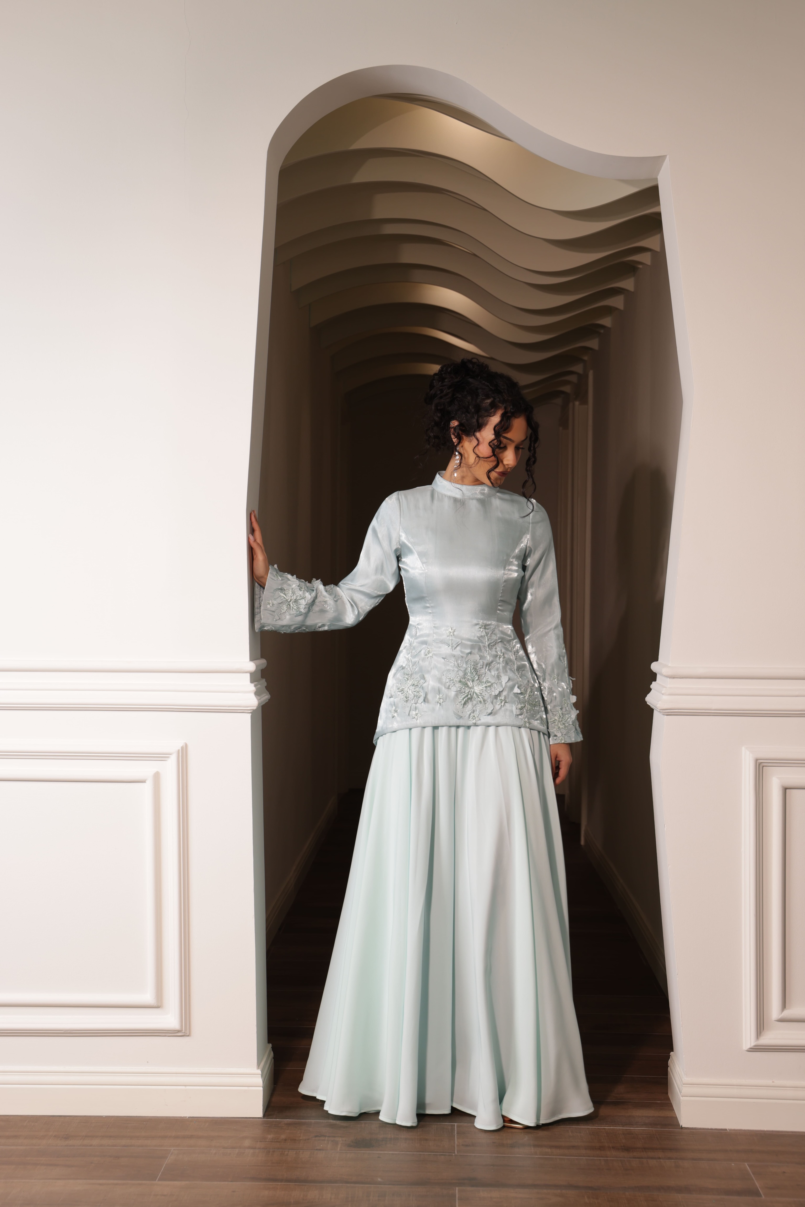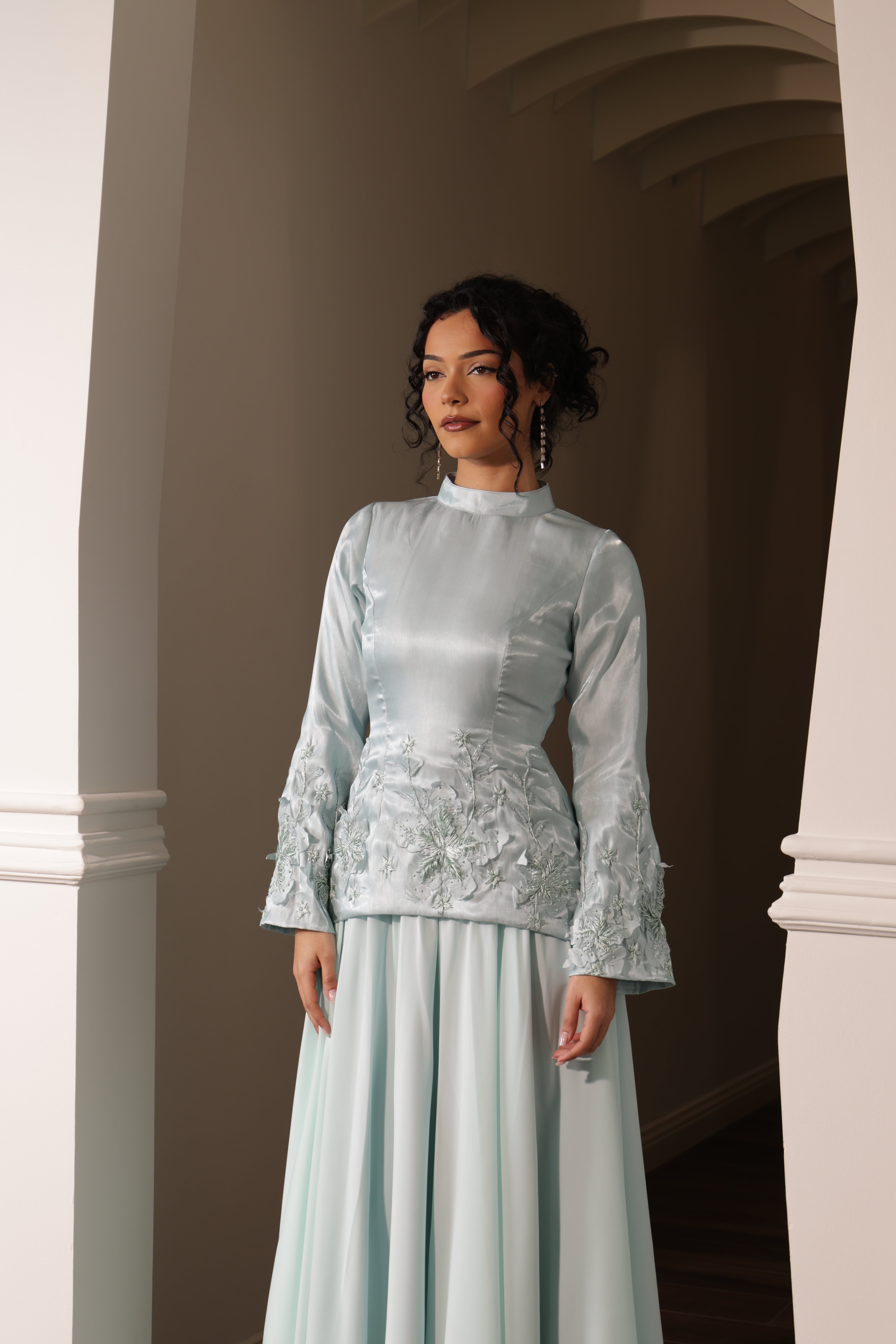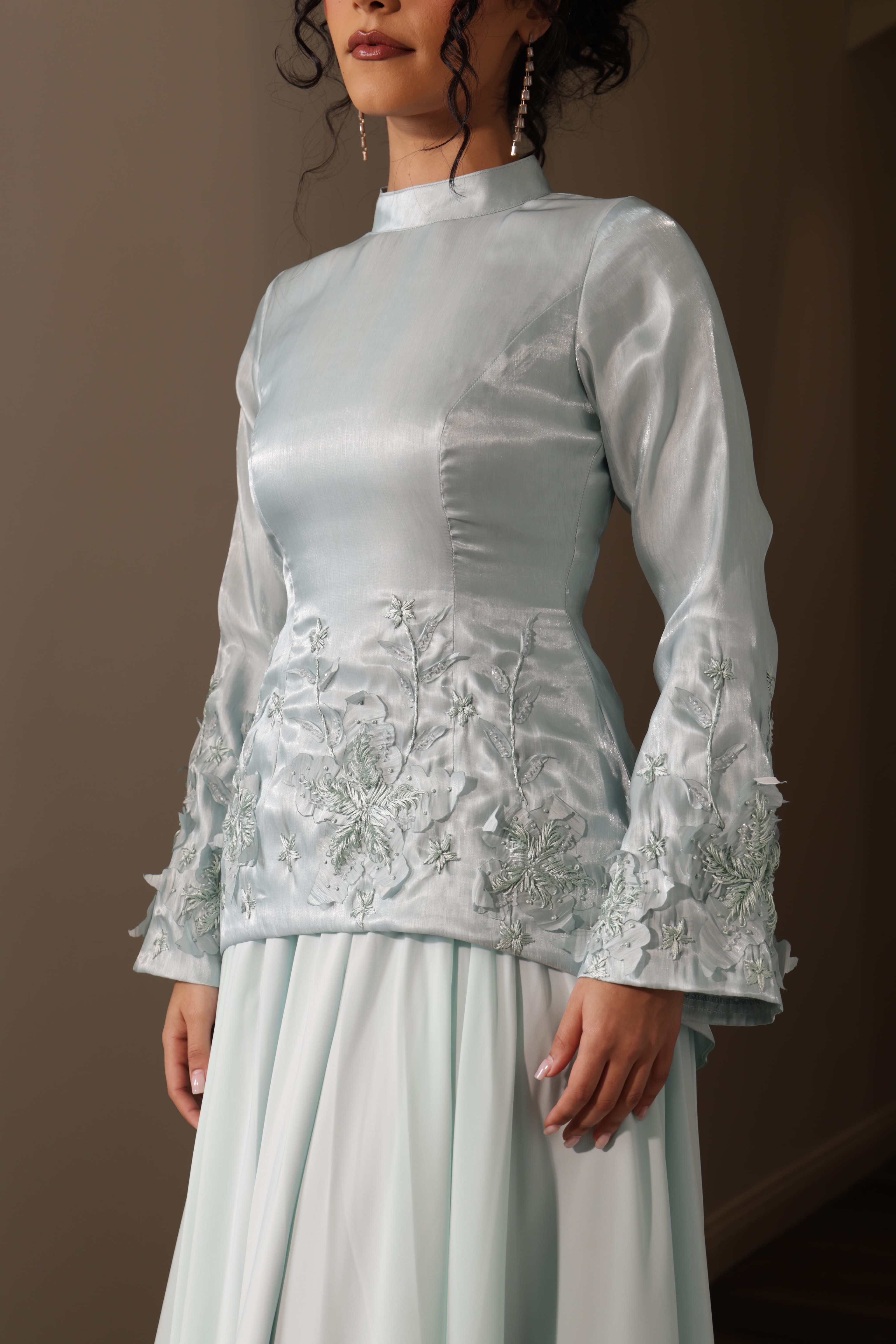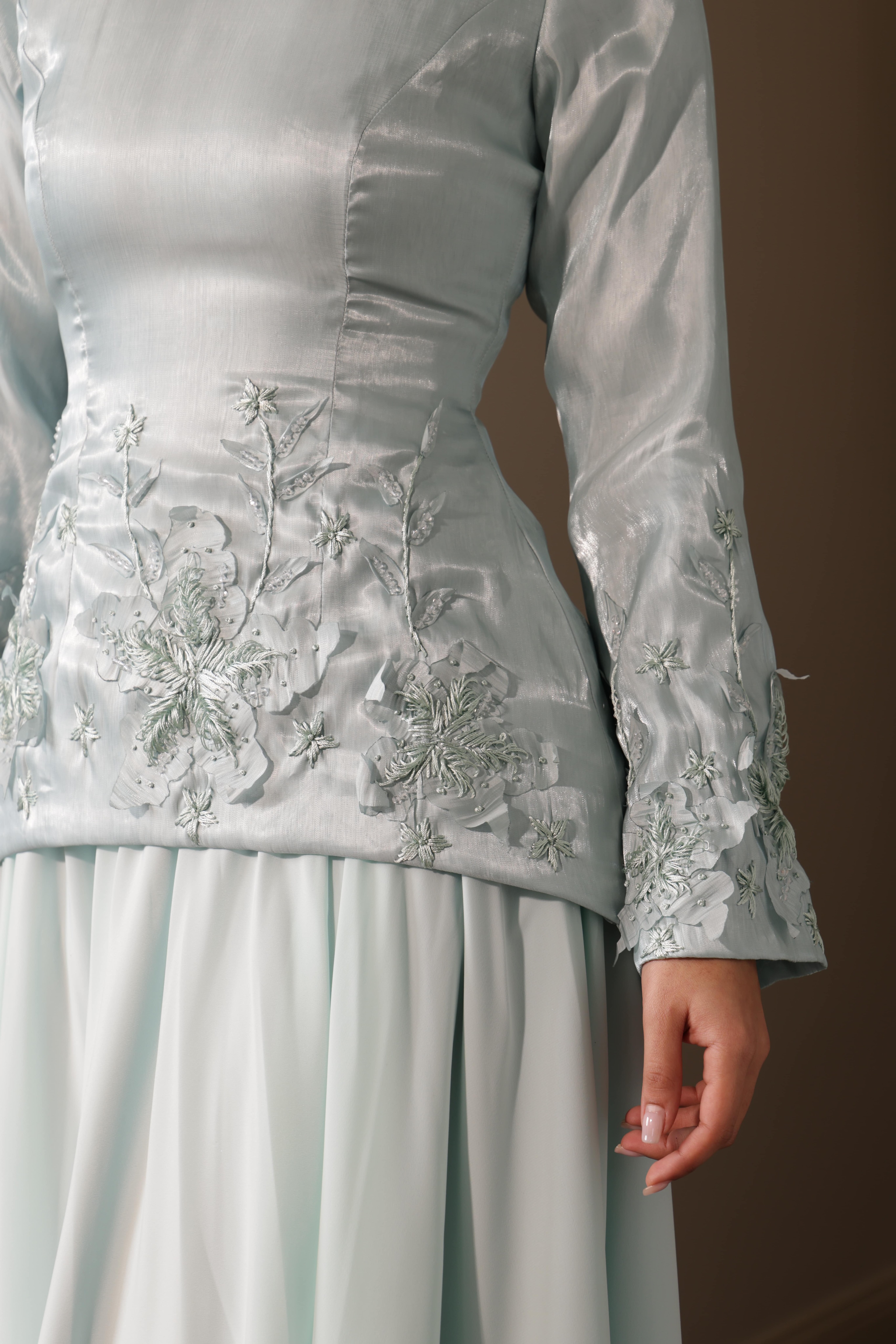 فستان مستوحى من زهرة الزنبق قطعة واحدة القماش العلوي اورجنزا القماش السفلي الماس