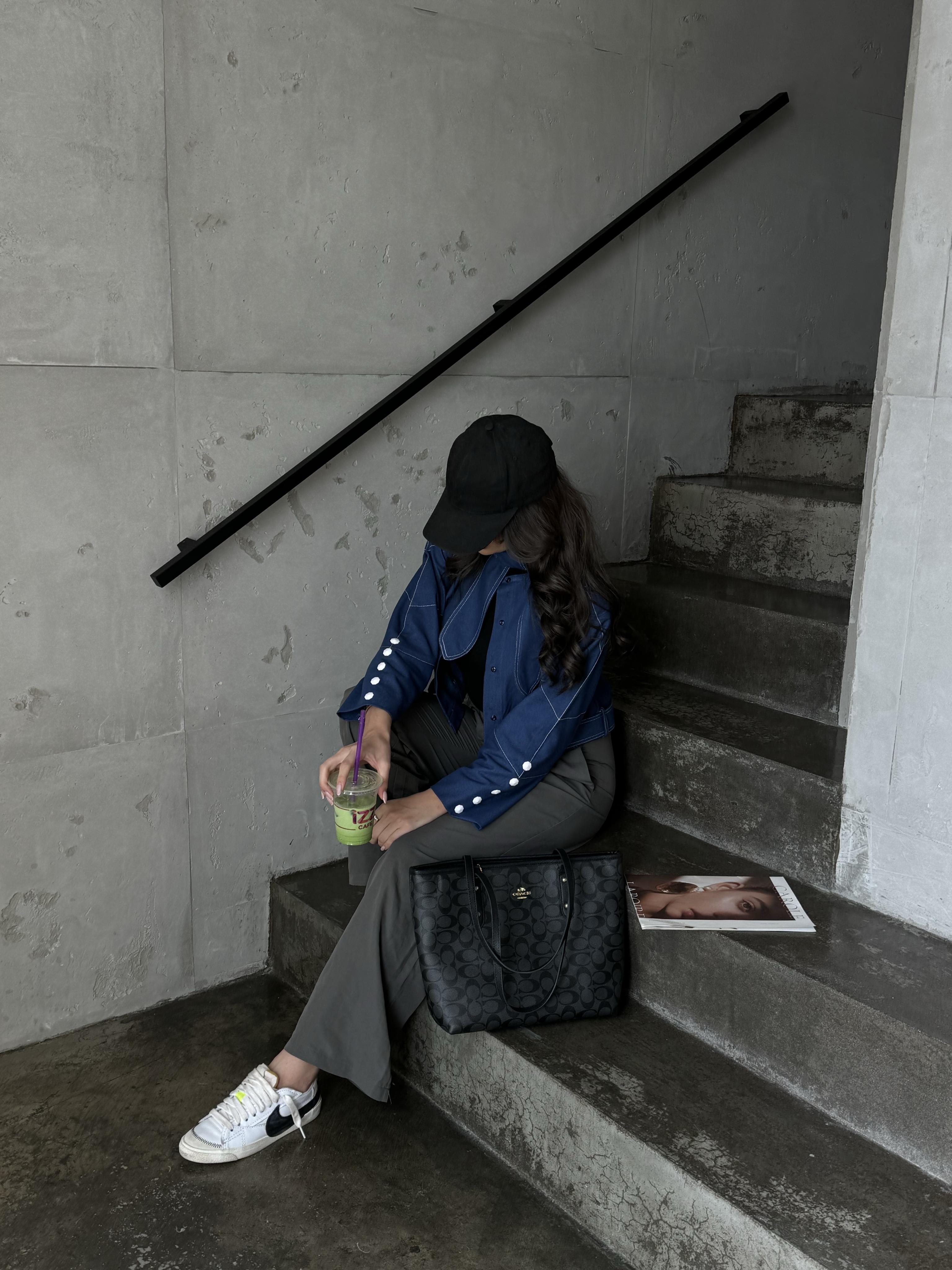 جاكيت جينز خفيف يحتوي على ربطة عنق منفصلة الأطوال الظاهرة افتراضية